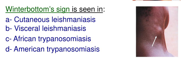 Winterbottom belirtisi, Trypanosoma brucei rhodesiense ve Trypanosoma brucei gambiense parazitlerinin neden olduğu bir hastalık olan Afrika trypanosomiasis’in (Afrika uyku hastalığı) erken evresiyle ilişkili, arka servikal lenf düğümü zinciri boyunca lenf düğümlerinin şişmesidir ( lenfadenopati ) .