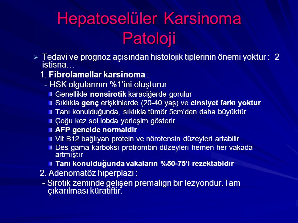 Karaciğerin fibrolamellar kanseri: (%5) Prognoz daha iyidir.