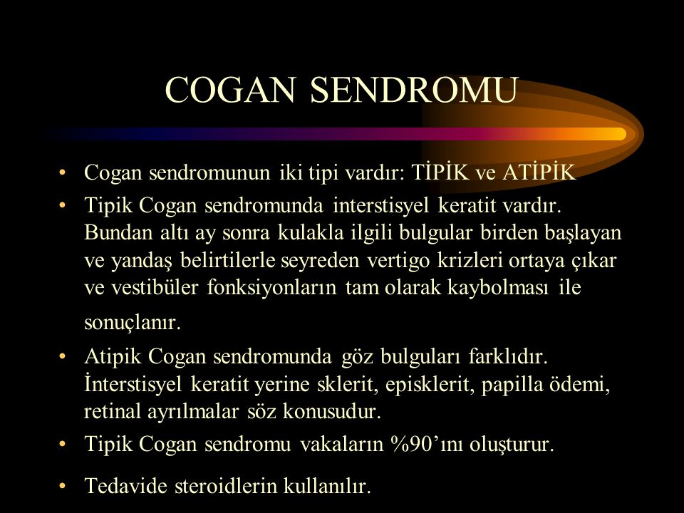 Cogan sendromunda işitme-denge bozuklukları genellikle göz bulguları ortaya çıktıktan sonraki 2 yıl içinde görülür