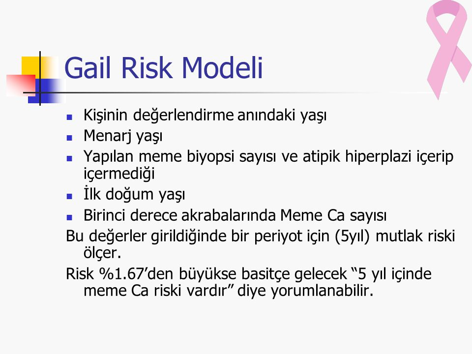 Hangisi meme kanseri için risk değerlendirme modeli olarak yaygın kabul gören ‘Gail Modeli’nin esas kriterlerinden değildir?
