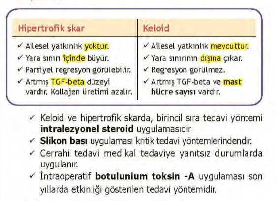 Hipertrofik skar, keloidlerde gözlemlenen derecede olmasa da, kabarık bir skar oluşumuna neden olan aşırı miktarda kollajen birikimi ile karakterize edilen bir kutanöz durumdur Keloidler gibi bunlar da çoğunlukla sivilce, piercing , kesik ve yanık bölgelerinde oluşur . Genellikle sinirleri ve kan damarlarını içerirler. Genellikle dermisin derin katmanlarını kapsayan termal veya travmatik yaralanma sonrasında gelişirler ve yüksek düzeyde TGF-β eksprese ederler .