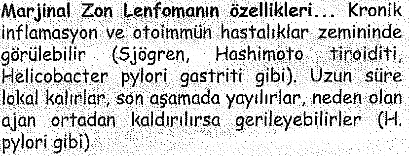 Bu lenfomaların otoimmün ya da immünolojik etiyoloji ile kronik inflamatuvar hastalık zemininde geliştiği düşünülmektedir.