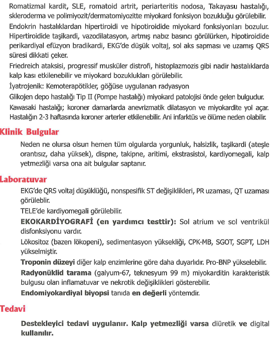 Kesin tanı endomiyokardiyal biyopsi gerektirir