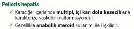 1-Enfeksiyonlar: HIV, basiller peliosis (********Bartonella cinsinin neden olduğu, kedi tırmığı hastalığından sorumlu bakteriler olup, histolojik olarak pelyotik lezyonlara komşu olarak tespit edilmiştir), Staphylococcus aureus