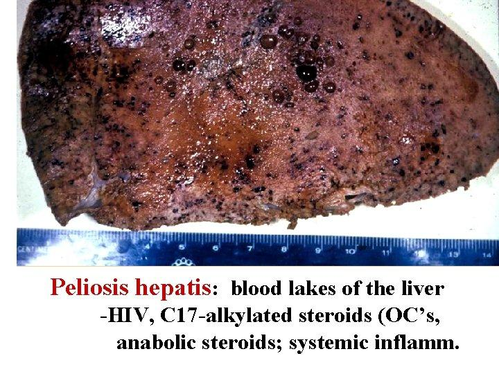 Peliosis hepatis, anabolik steroidlerin ve oral kontraseptif haplar gibi diğer hormonların kullanımı ile ilişkilendirilmiştir.