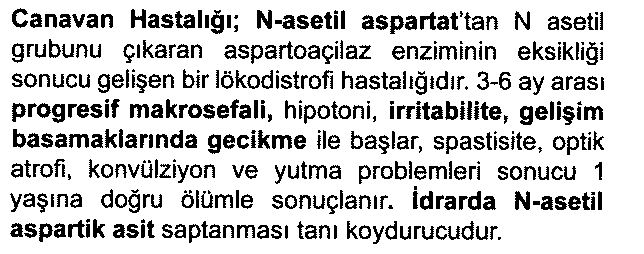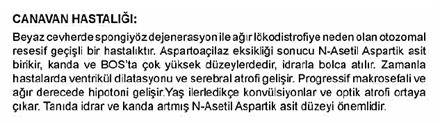 Canavan hastalığına, aspartoaçilaz enziminin üretiminden sorumlu olan kusurlu bir ASPA geni neden olur . Azalan aspartoaçilaz aktivitesi, N -asetilaspartatın normal parçalanmasını önler ; burada N -asetilaspartatın birikmesi veya daha fazla metabolizmasının olmaması, beynin sinir liflerinin miyelin kılıfının büyümesine müdahale eder. Miyelin kılıfı, sinir hücrelerini çevreleyen ve bir yalıtkan görevi görerek sinir uyarılarının verimli bir şekilde iletilmesine izin veren yağlı kaplamadır