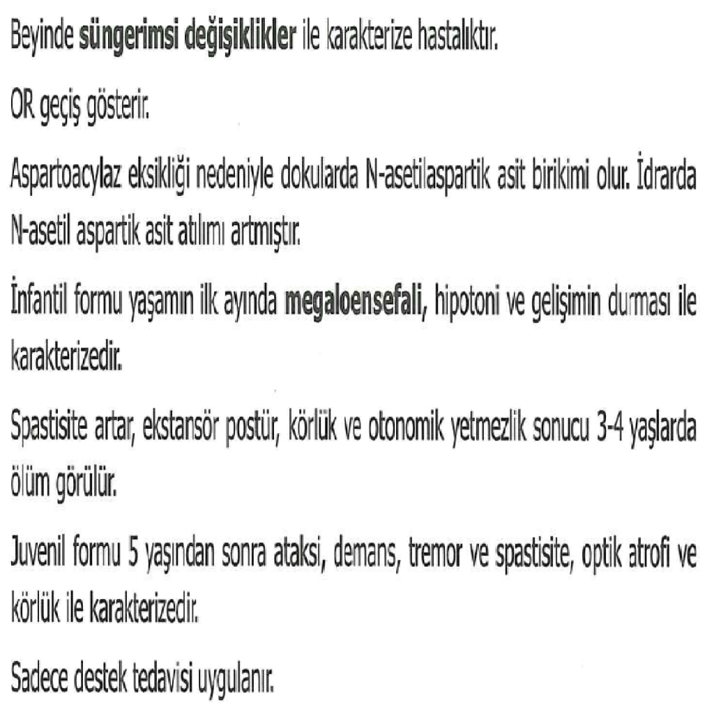 Aminoaçilaz 2 enziminin eksikliğinden kaynaklanır ve lökodistrofiler olarak adlandırılan bir grup genetik hastalıktan biridir . Bir nöronun aksonunu yalıtan fosfolipid tabakasındaki miyelin dejenerasyonu ile karakterize edilir ve insan kromozomu 17 üzerinde bulunan bir gen ile ilişkilidir .