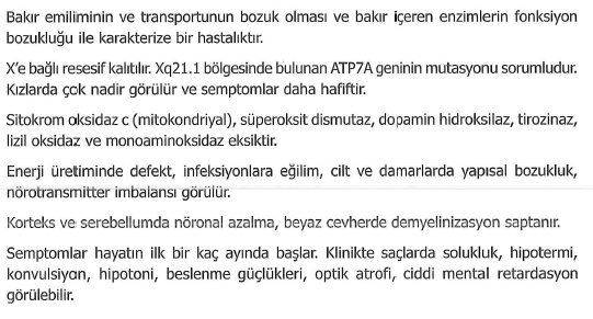 Menkes kinky hair sendromu