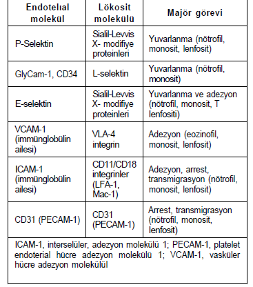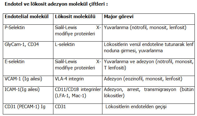 İntegrinler (LFA-1 ve MAC-1) sıkı adezyon molekülleridir. Selektinler ise adezyon başlangıcı / gevşek tutunma/ yuvarlama işleminde etkilidirler.