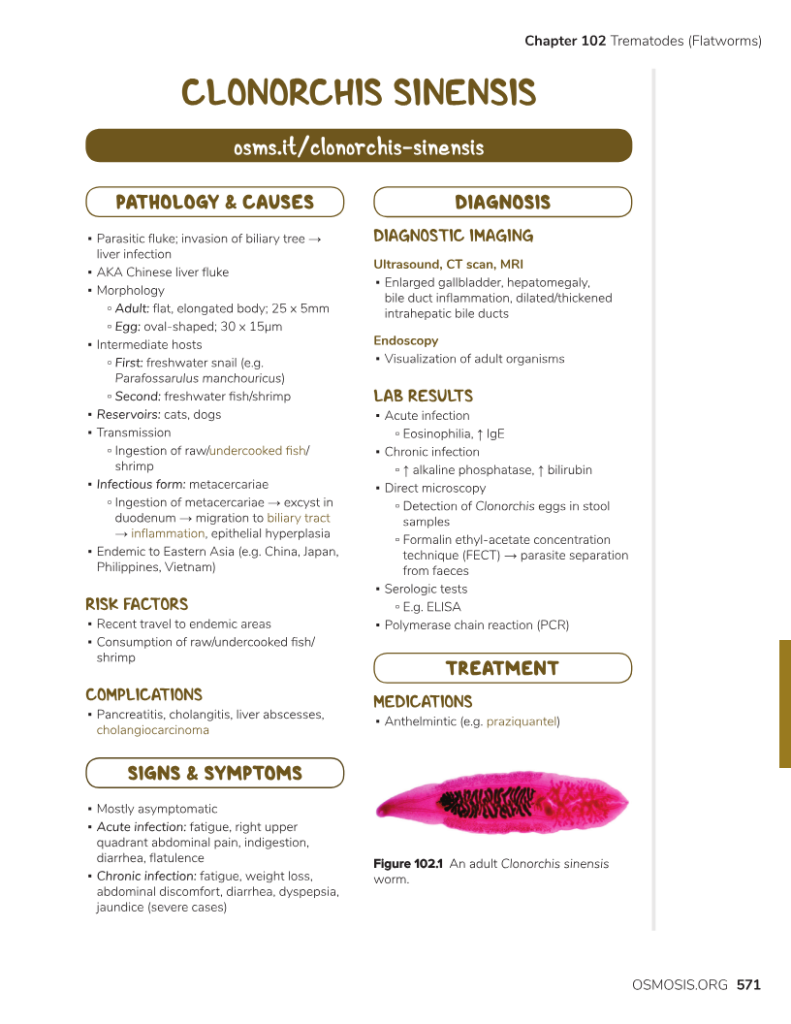Clonorchis Sinensis: Uzak Doğu’da sıktır. Çiğ balık yemekle bulaşır. KC tutulumu ile siroz oluşumuna neden olabilir. Kolanjiokarsinom ile ilişkili bulunmuştur.