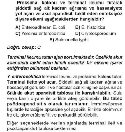 2-Çocuklarda ve ergenlerde , Yersinia psödotüberkülozun neden olduğu akut terminal ileit ( psödoapandisit ) ile birlikte mezenterik lenfadenit (Masshoff hastalığı, Maßhoff lenfadenit) gelişir . Apandisit şüphesi nedeniyle apandisin çıkarılması alışılmadık bir durum değildir . Genellikle ateş eşlik eder.