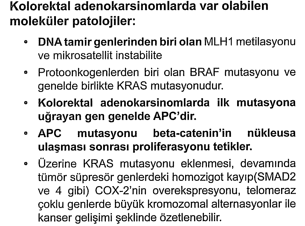 Ras geninde nokta mutasyonu sık rastlanır. Ayrıca kolorektal ca ile ilişkili olan onkogen kromozomlar 5,12,17,18 olarak sayılabilir.