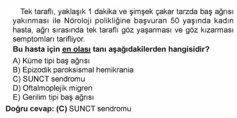 Short lasting Unilateral Neuralgiform headache with Conjunctival injection and Tearing (SUNCT) sendromu ilk olarak 1989’da Sjaastad tarafından bildirilmiştir.