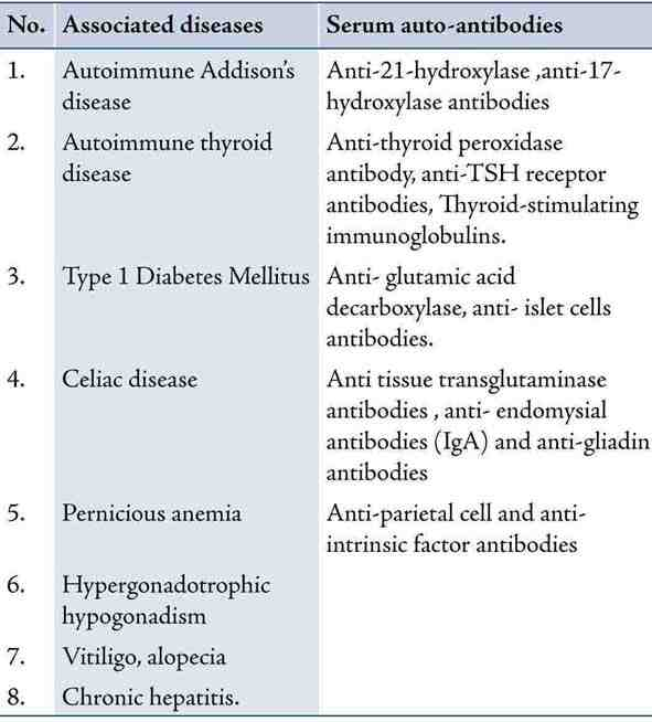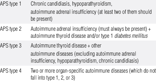 Üç tip APS vardır ve endokrin otoimmüniteyi içeren bir takım başka hastalıklar da vardır.