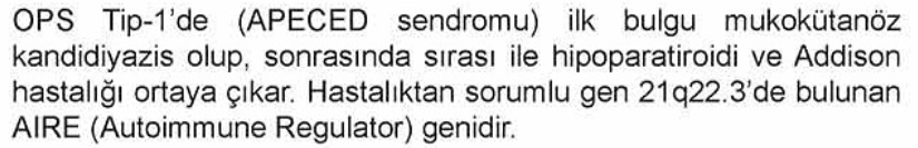 Bu olgularda kronik mukokutanöz kandidiyazis, primer adrenal yetmezlik ve otoimmün hipoparatiroidizm gözlenir.