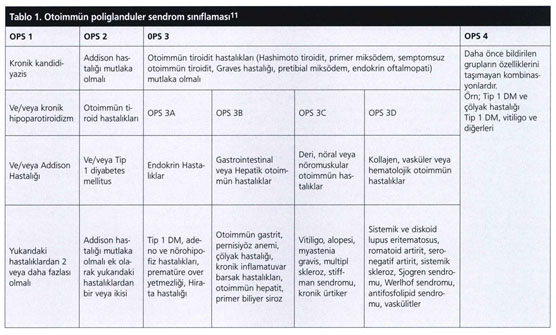OPS Tip 4 (Addison hastalığı ile bir veya daha fazla organa spesifik Tip 1 ve tip 2 OPS’de görülen major komponentleri içermeyen otoimmün hastalıklar) olarak ayrılmıştır.