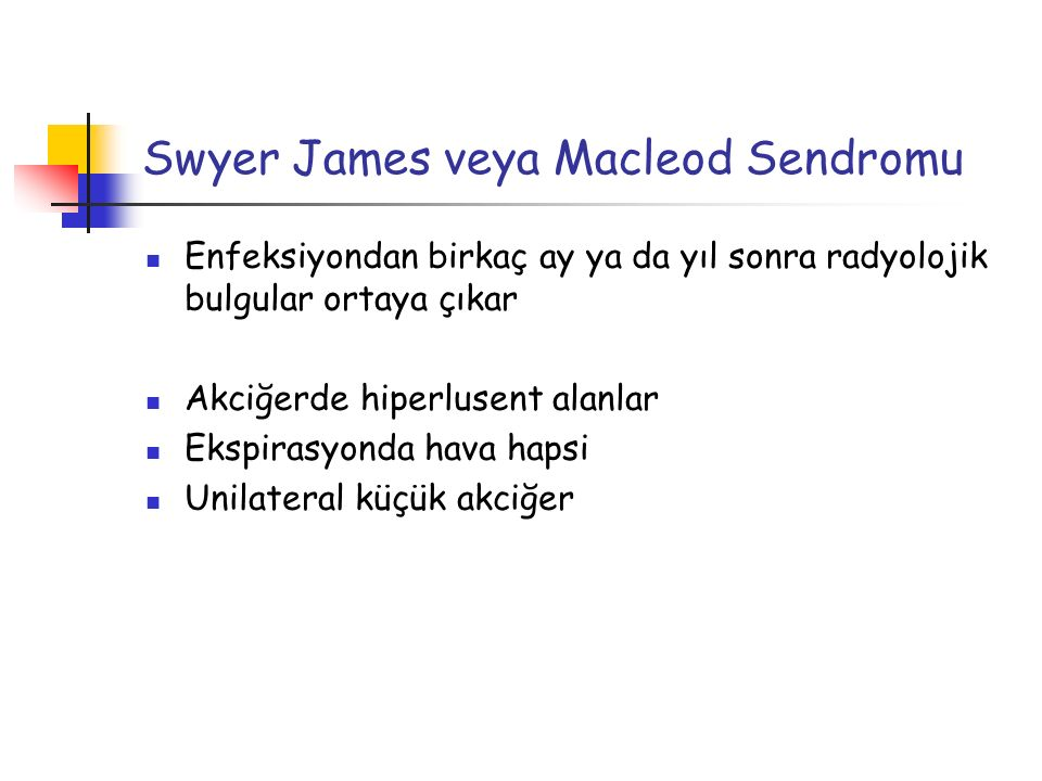 Genellikle asemptomatik olup insidental olarak saptanır. Bronşiektazi varlığı klinik belirti ve prognozda önemlidir. Swyer James MacLeod etyolojisi tam olarak bilinmemekle birlikte özellikle çocukluk çağında geçirilen sık enfeksiyonlar sonrasında geliştiği tahmin edilmekte-dir.