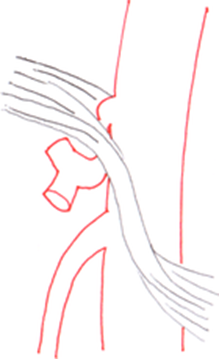 Bazı insanlarda, MAL’nin T12’den daha düşük bir giriş noktası vardır ve çölyak gövdesini bozabilir ve sıkıştırabilir. Çölyak eksen kompresyon sendromu olarak da adlandırılan Dunbar sendromu, çölyak gövdesinin MAL tarafından sıkıştırılması nedeniyle kronik postprandiyal karın ağrısı (anjina abdominis yani iskemik tip epigastrik ağrı) olarak tanımlanır.