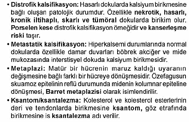 Papiller tiroid karsinomu, overin seröz papiller karsinomu ve menenjiomda görülen psammoma cisimcikleri de distrofik lameller kalsifikasyon örnekleridir.