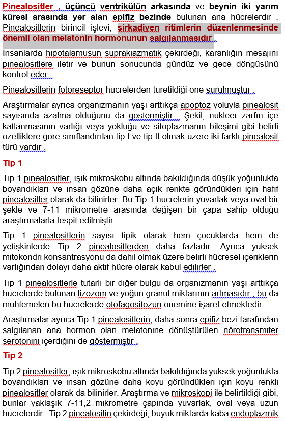Pinealosit: Epifiz bezinin melatonin salgılayan nöronu