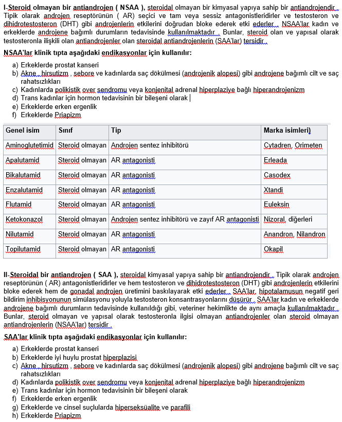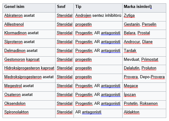 4-Flutamid / Nilutamid / Bikalutamid / Enzalutamid Nonsteroid yapılı androjen reseptör blokörleridir. Oral yoldan aktiftirler. Prostat kanserinin tedavisinde GnRH analogları ile kombine kullanılırlar. Erkeklerde jinekomastiye neden olabilirler.