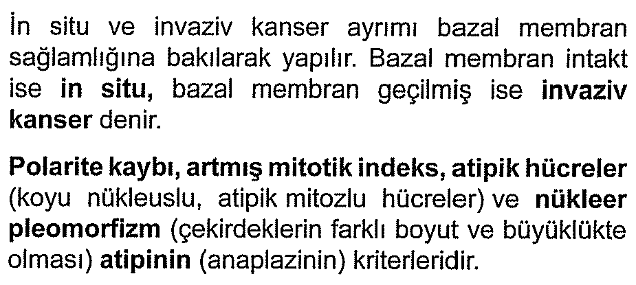 İn situ ve invazif kanser ayırımı ve Anaplazi kriterleri