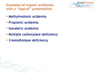 Organik asidemiler, çeşitli enzim eksiklikleri nedeniyle vücut sıvılarında organik asitlerin birikerek vücuda zararlı etki yapmalarıyla yaşamın ilk günlerinde yaşamı tehdit eden ciddi asidoz atakları başta olmak üzere çok farklı klinik bulgularla kendini gösteren çekinik gen ile bebeğe geçen kalıtsal metabolizma bozukluklarıdır.