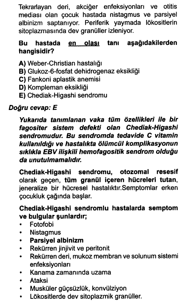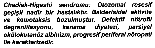Lökositlerde fagolizozom oluşumunun geciktiği ve azaldığı, bu nedenle bakterilerin fagositozunun bozulduğu hastalık aşağıdakilerden hangisidir?