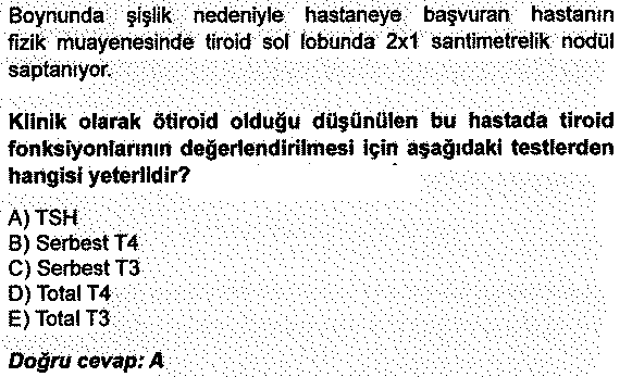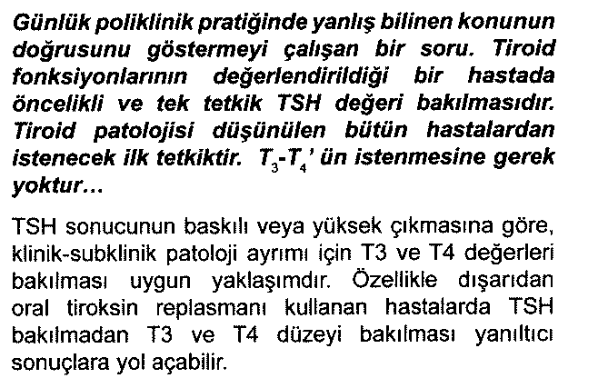 Tiroid fonksiyonlarını değerlendirmede öncelikli bakılması gereken, TSH