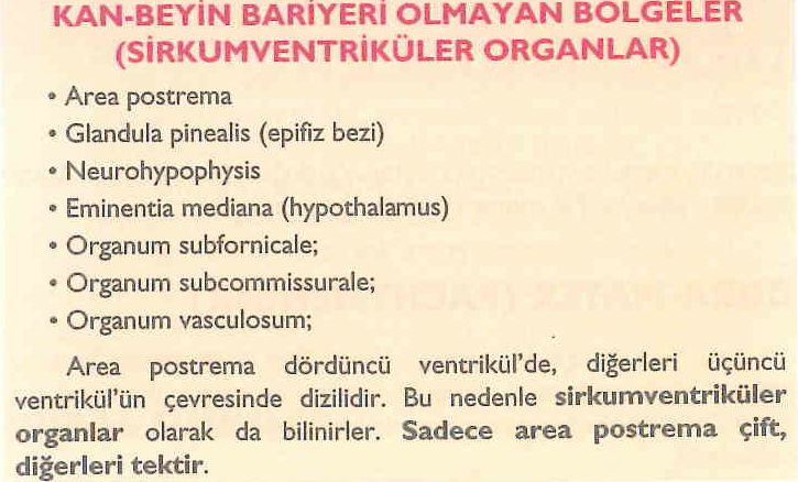 Sirkumventriküler organlar yada Kan-Beyin Bariyeri olmayan bölgeler