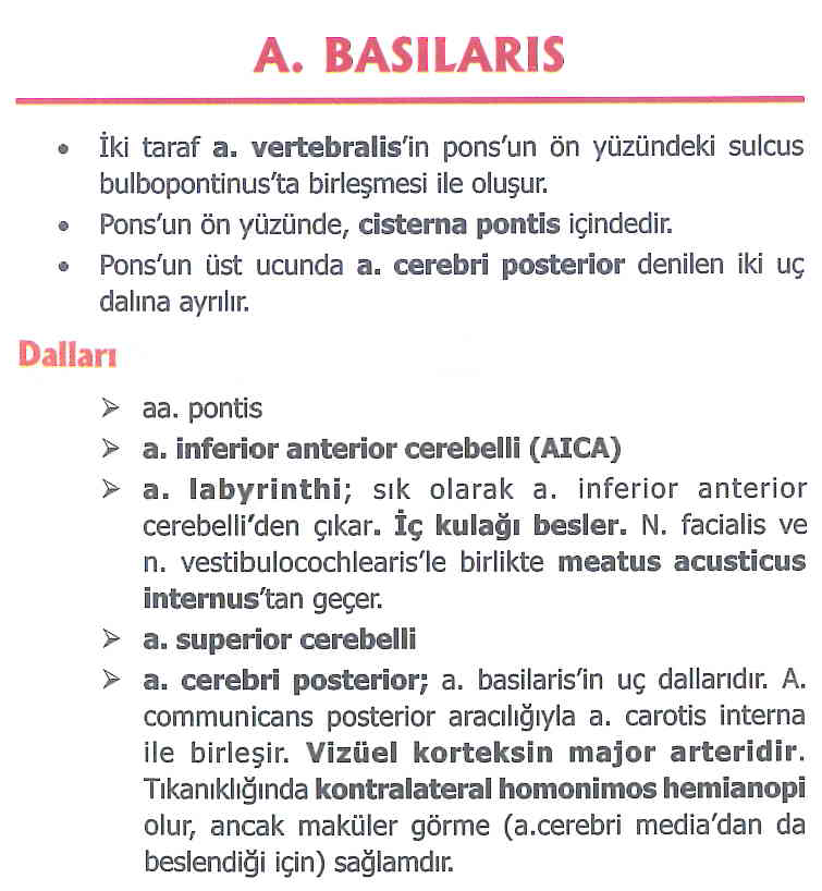 Tıkanıklığında kontralateral homonimos hemianopsiye neden olan damar, A. basillarisin dalı olan a. cerebri posteriordur. Çünki vizüel korteksin major arteridir. 25 Mart 2024 yazar drtanjuy