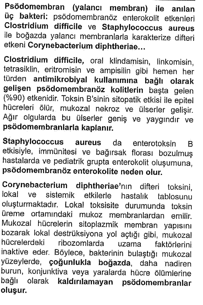 Psödomembran oluşumu ile karekterize mikroorganizmalar