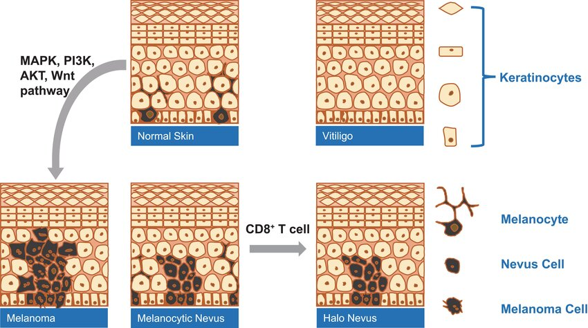 Bir nevüsü çevreleyen bir hale oluşumunun, CD8+ T lenfositleri adı verilen bazı beyaz kan hücrelerinin derinin pigment üreten hücrelerini (melanositler) yok etmesiyle meydana geldiğine inanılmaktadır.