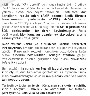 Kistik fibrozda CFTR klorür kanalı kusurludur ve klorürün ter kanalı hücreleri tarafından yeniden emilmesine izin vermez. Sonuç olarak kanalda daha fazla sodyum kalır ve terde daha fazla klorür kalır. Bu nedenle kistik fibrozlu kişilerde terdeki klorür konsantrasyonu yükselir.