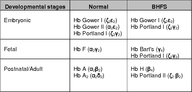 Hemoglobin Barts Hidrops Fetalis Sendromunda alfa zincirleri (–/–) tamamen yoktur, intrauterin transfüzyon yapılmazsa çoğunlukla fetal ve neonatal ölümle sonuçlanır.
