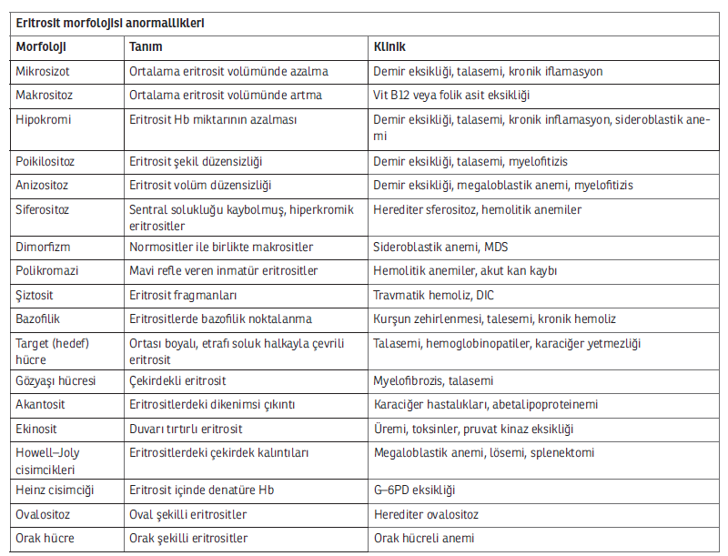 Periferik yaymada izlenen eritrosit morfoloji bulguları ile ilgili aşağıdakilerden hangisi yanlıştır?
