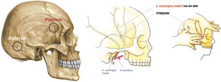 Orta meningeal arterin ön bölümü pterionun altından geçer.