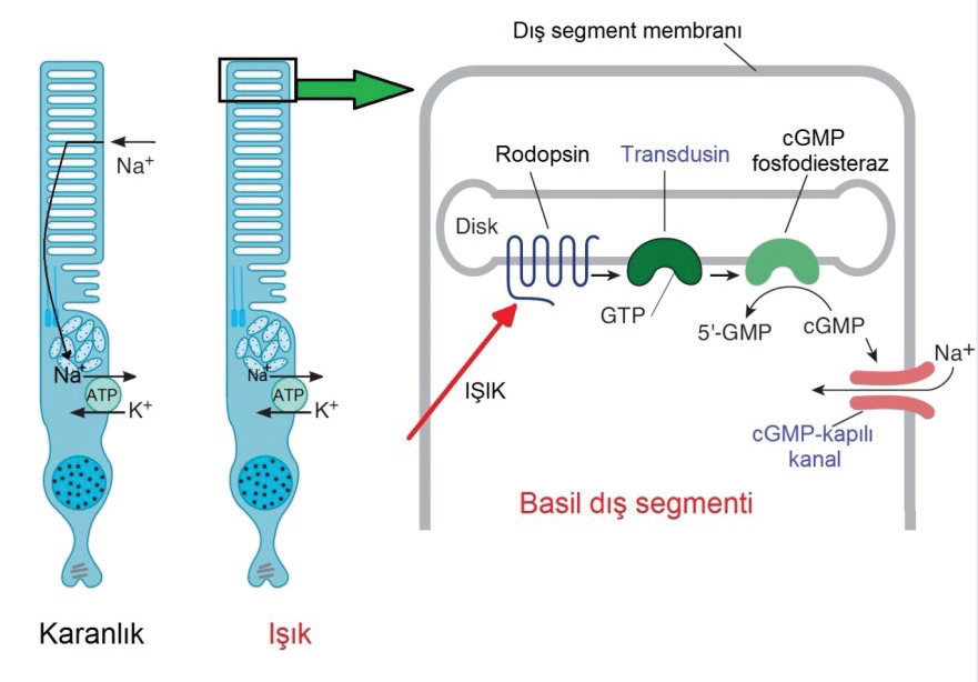 Basillerin ışığa cevap vermesinde sırasındaki olayların doğru sıralaması hangisinde verilmiştir?