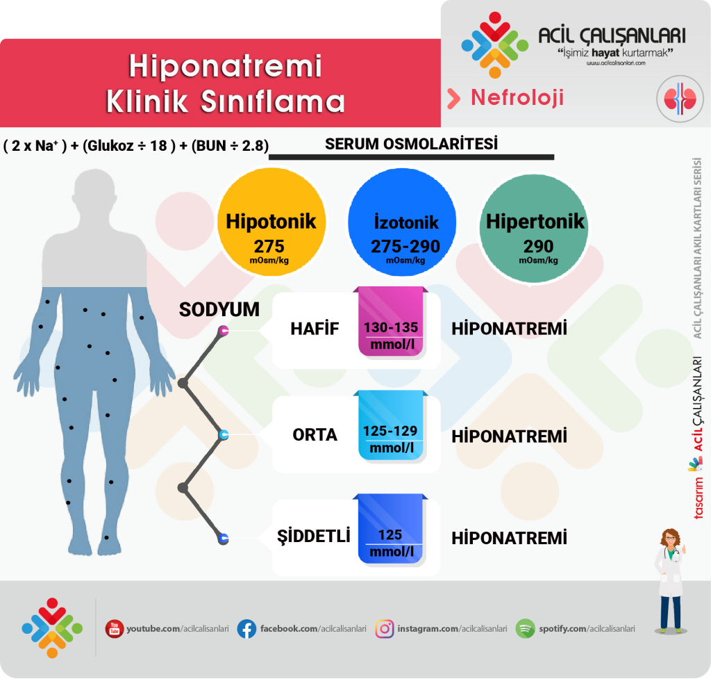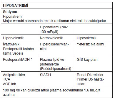 Serum sodyum değerinin 130 meq/ L’ nin altında bulunması hiponatremi olarak değerlendirilir. Ancak klinik değerlendirme yapmadan önce, bu değerin gerçek hiponatremi olup olmadığının irdelenmesi gerekir. Pseudohiponatremi olarak irdeleyeceğimiz durumların başında izoozmolar hiponatremiler gelir.