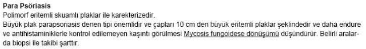 Doğrulanmış bir parapsoriazis en plak grandes düzenli olarak izlenmelidir, çünkü daha sonraki yıllarda mikoz fungoides antitesinin T hücreli lenfomasına geçiş mümkündür.