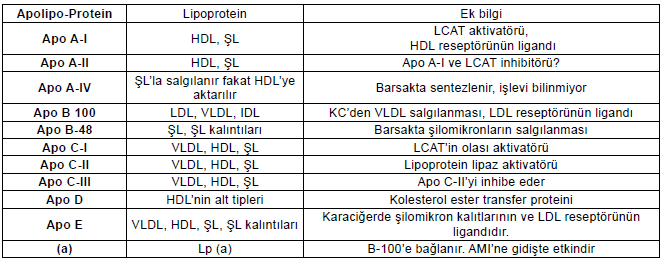 Plazma lipoproteinlerindeki başlıca apolipoproteinler