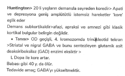 Hareket bozuklukları, psikiatrik semptomlar ve demansla karakterize otozomal dominant dejeneratif bir hastalıktır. 40–50 yaşlarda başlar.