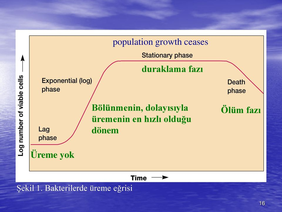 E.Çoğalmanın durması dönemi: Töksik metabolitler bakterinin üremesine izin vermez.