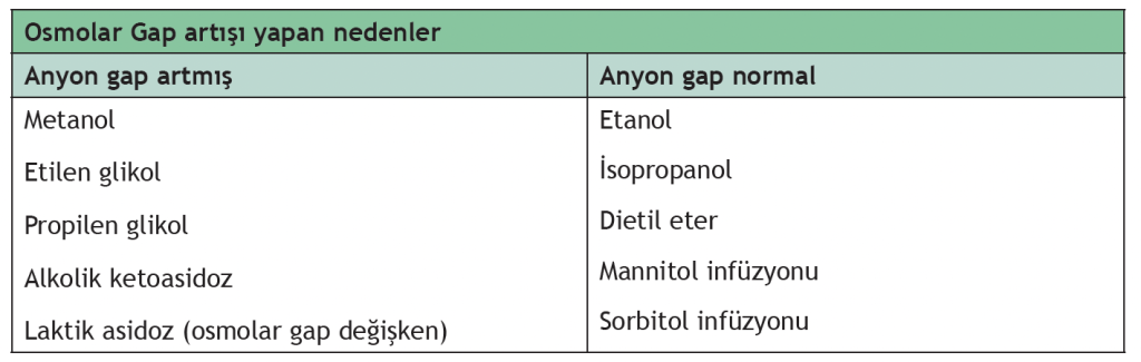 Anyon gap’i normal tutarken osmolar gap artışı yapan ilaçlar