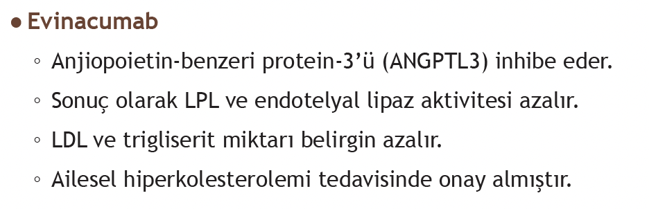 Evinacumab; ANGPTL3 e karşı etki eden monoklonal antikordur. Evkeeza marka adı altında satılan Evinacumab , homozigot ailesel hiperkolesteroleminin (HoFH) tedavisi için monoklonal bir antikor ilacıdır 22 Temmuz 2024 yazar drtanjuy