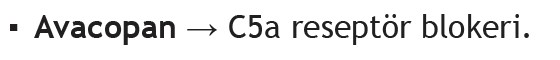 Tavneos marka adı altında satılan Avacopan, nötrofil sitoplazmik otoantikor ilişkili vaskülit tedavisinde kullanılan bir ilaçtır. Avacopan, bir kompleman 5a reseptör antagonisti ve bir sitokrom P450 3A4 inhibitörüdür. Avacopan, glukokortikoidler de dahil olmak üzere standart tedaviyle birlikte şiddetli aktif anti-nötrofil sitoplazmik otoantikor ilişkili vaskülit ( polianjiitli granülomatozis ve mikroskobik polianjiit ) olan yetişkinlerin ek tedavisi olarak endikedir