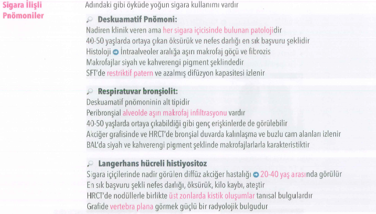 Geleneksel olarak, “sigarayla ilişkili interstisyel akciğer hastalığı”, sigara içmeyle güçlü bir epidemiyolojik ilişkisi olduğu bilinen varlıkları kapsar: