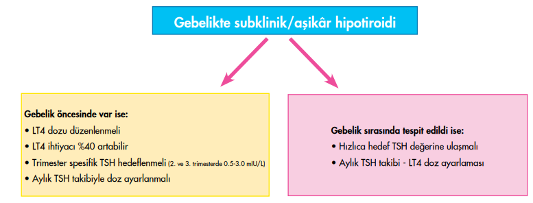 Subklinik hipertiroidi geçici veya kalıcı olabilirken, kalıcı sebepleri egzojen ve endojen nedenlerden kaynaklanabilir. Graves hastalığı, toksik nodüler adenom, toksik multinodüler guatr vb tüm klinik hipertiroidi yapabilecek durumlar subklinik hipertiroidi sebeplerinden olabileceğinden tanı esnasında mutlaka gözden geçirilmesi gerekmektedir. Yapılan toplum çalışmalarında subklinik hipertiroidinin atriyal fibrilasyon, osteoporoz, kardiyovasküler mortalite ve tüm nedenlere bağlı ölüm riskinde artışa sebep olduğu gösterilmiştir. Bu nedenle tanı kesinleştikten sonra medikal tedavi başlanması hastanın yaşı, eşlik eden komorbid durumu ve diğer risk faktörlerine göre planlanmalıdır.