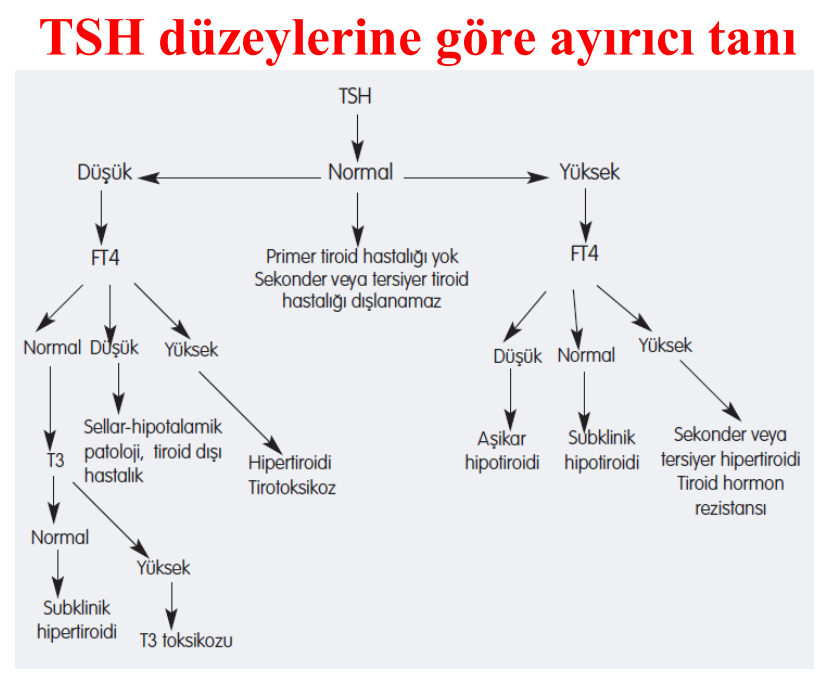 Açık primer hipertiroidizmde TSH seviyeleri düşük, T4 ve T3 seviyeleri yüksektir. Subklinik hipertiroidizm, düşük veya saptanamayan serum TSH seviyesiyle, ancak normal serum serbest tiroksin seviyesiyle karakterize daha hafif bir hipertiroidizm türüdür.
