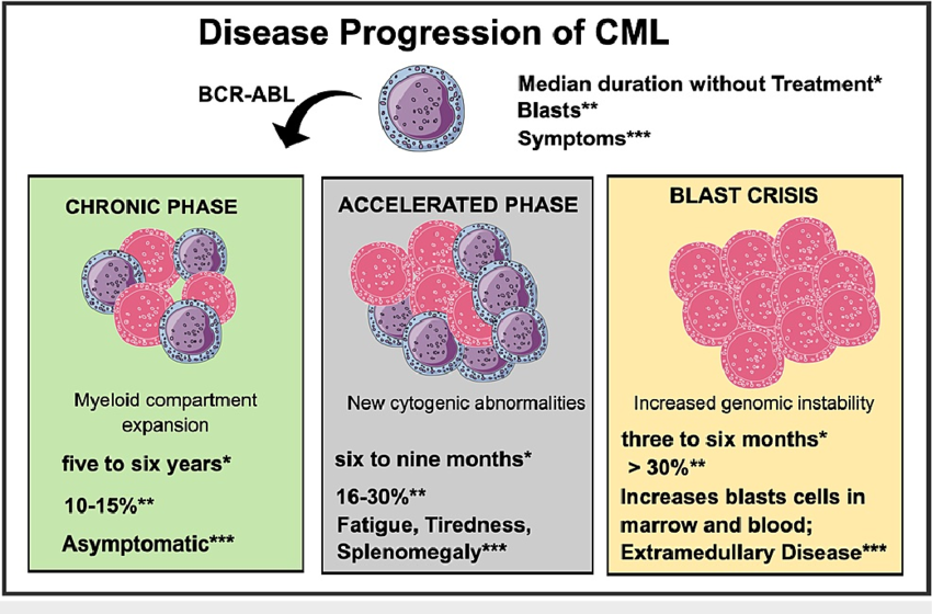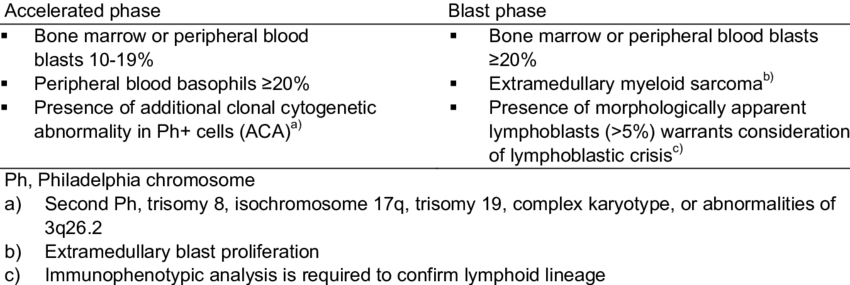 KML sınıflandırılırken faz dediğimiz hastalık aşamaları belirlenmeye çalışılır;